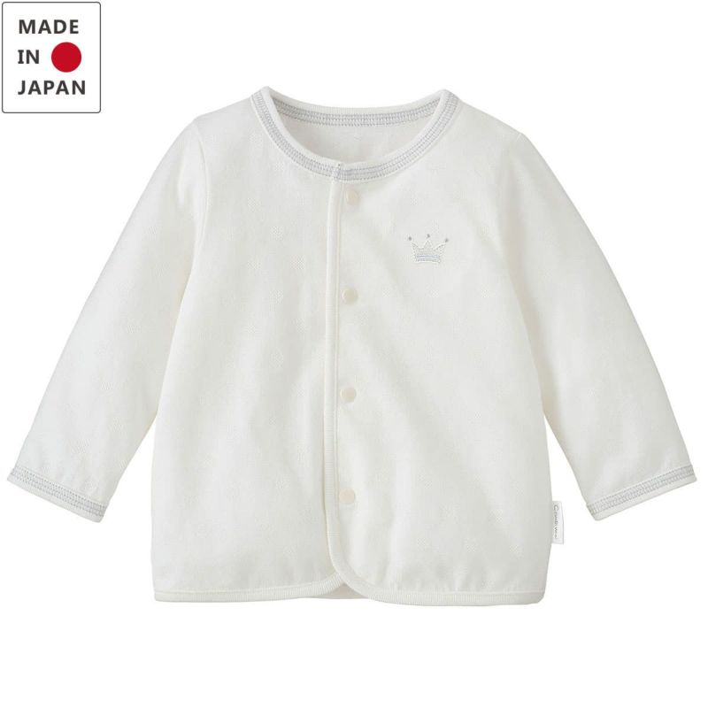 胸元にある王冠刺繍のワンポイントがキュートな綿100%素材のカーディガンです。ドットボタンだから小さなお子さまでも着やすく、コンパクトに折りたたんで、バッグに入れて持ち歩けばベビーの体温調節に便利です。ちょっとしたお出かけや、通園用のデイリー使いでも活躍します。