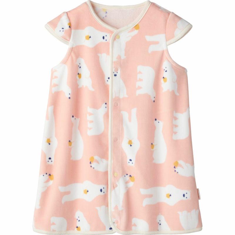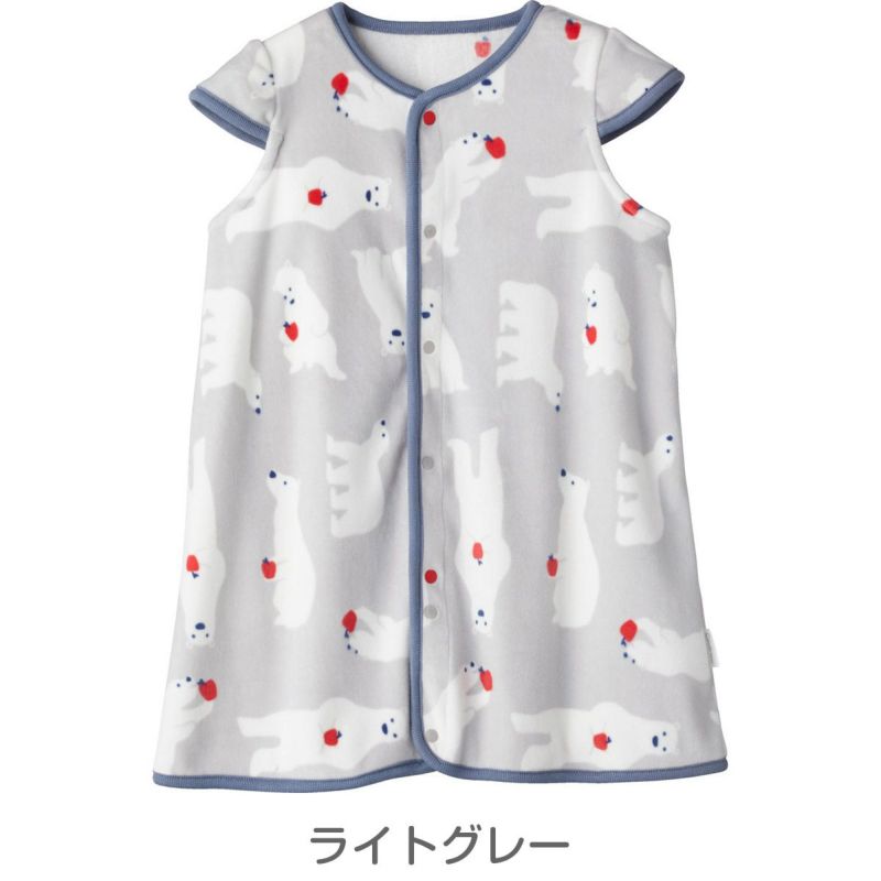 ファーストウェアと2WAYで使える大人気のスリーパーに、両面やわらかなマシュマロベロア素材が新登場。静電気防止仕様で、楽しいリンゴをかかえたシロクマ柄です。股下の目印にプランサーを配色使いにしています。