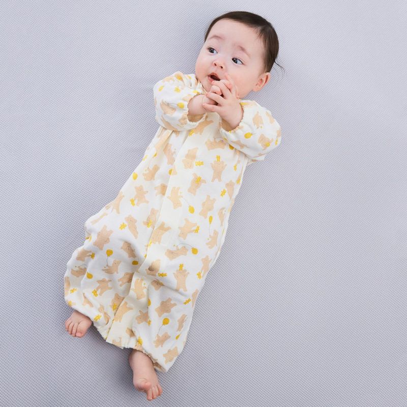 【柄】ゆるっと過ごすくまの総柄がほっこり可愛いツーウェイオールは男女ともにおすすめです。ベビーギフトにもおすすめです。