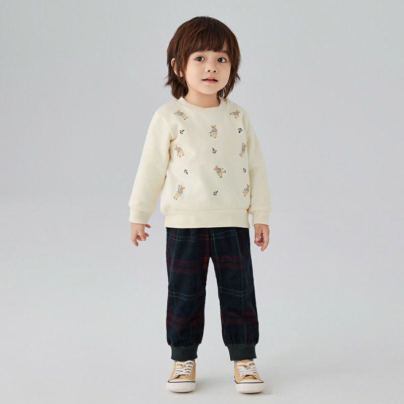 【素材】コンビミニのトレーナーといえば綿100%のベーシック裏毛生地。やわらかい風合いと程よい厚みで秋冬から春まで着用可能な生地です。