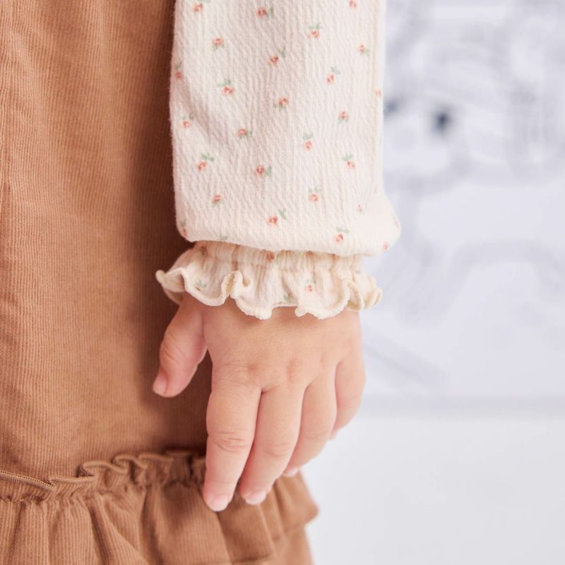 【仕様】シャーリングフリルが使われた襟部分がポイントの長袖Tシャツ。インナーとして襟元を出すレイヤードスタイルも楽しめるので着回しの幅が広がります。袖部分もギャザー仕様になっていて女の子らしさを引き立てます。