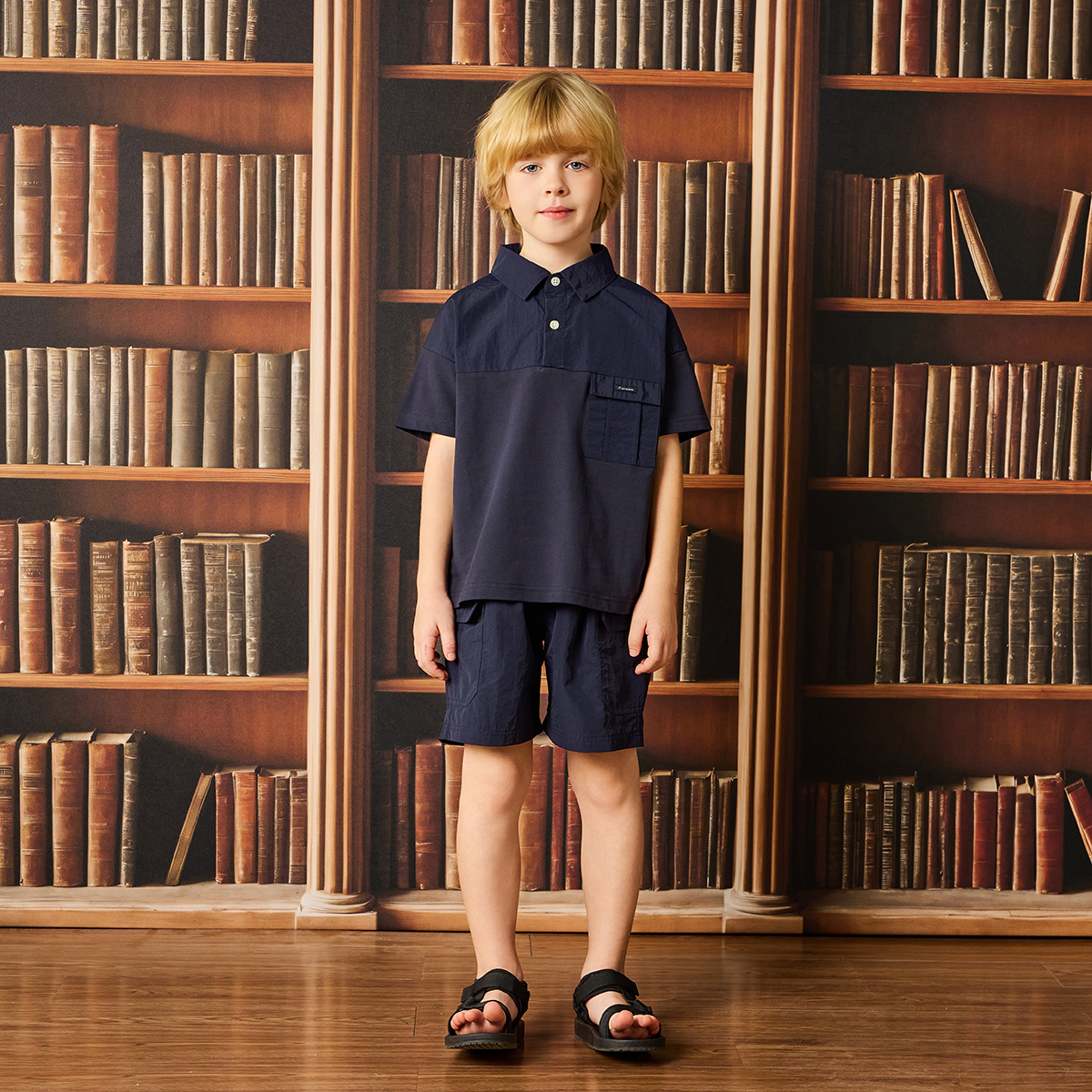 【仕様】ポケットのデザインにもこだわった、ゆったりとしたシルエットで異素材切替が特長のポロシャツは、さまざまなシーンで活躍する汎用性の高い一枚です。サイズは110~140の展開となっています。同素材のナイロンハーフパンツとセットアップコーディネイトもおススメです。(ハーフパンツ品番: