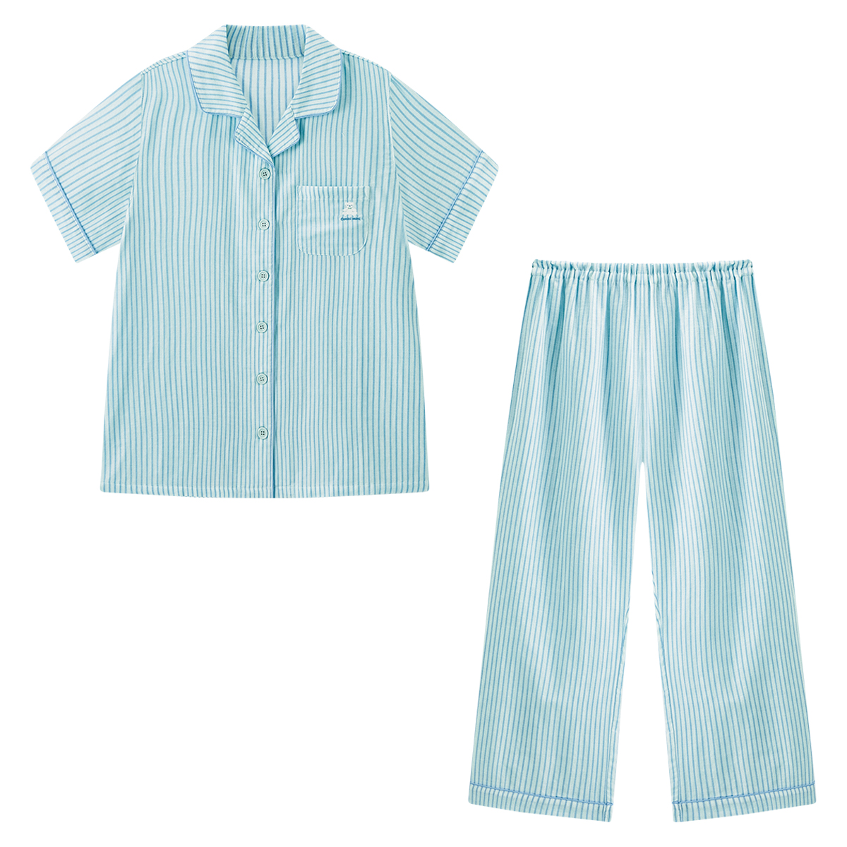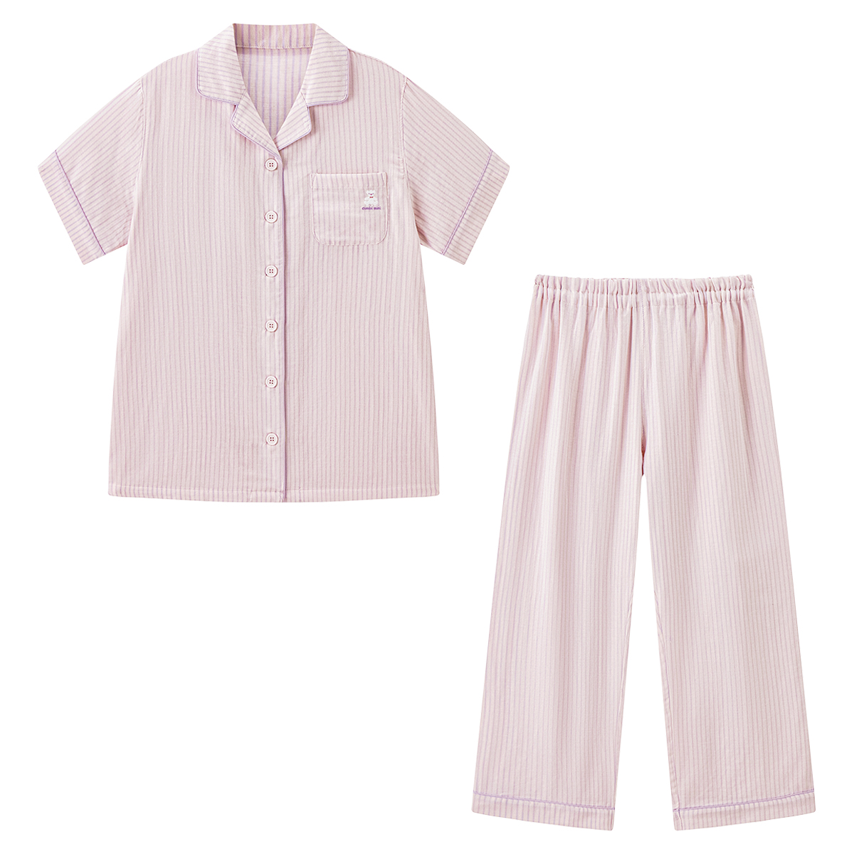 半袖前開きガーゼママパジャマ(先染めストライプ)