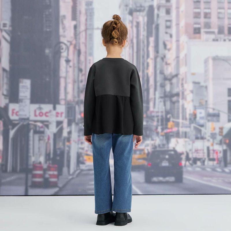 【素材】厚すぎず、伸縮性も兼ね備えた柔らかな風合いのデニムニット生地、動きやすく運動量の多い子供にも適した生地です。