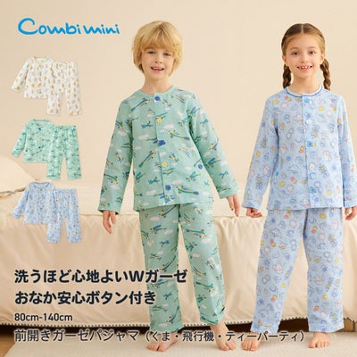 おなか安心ボタン付き長袖前開きガーゼパジャマ(くま・飛行機・ティーパーティ)のレビュー