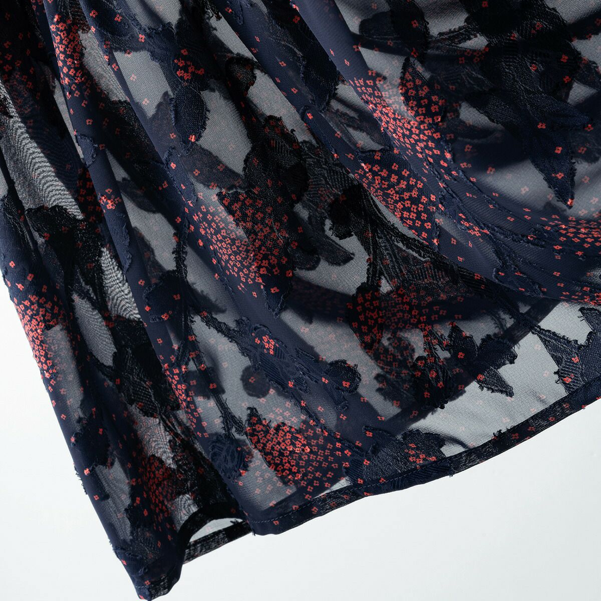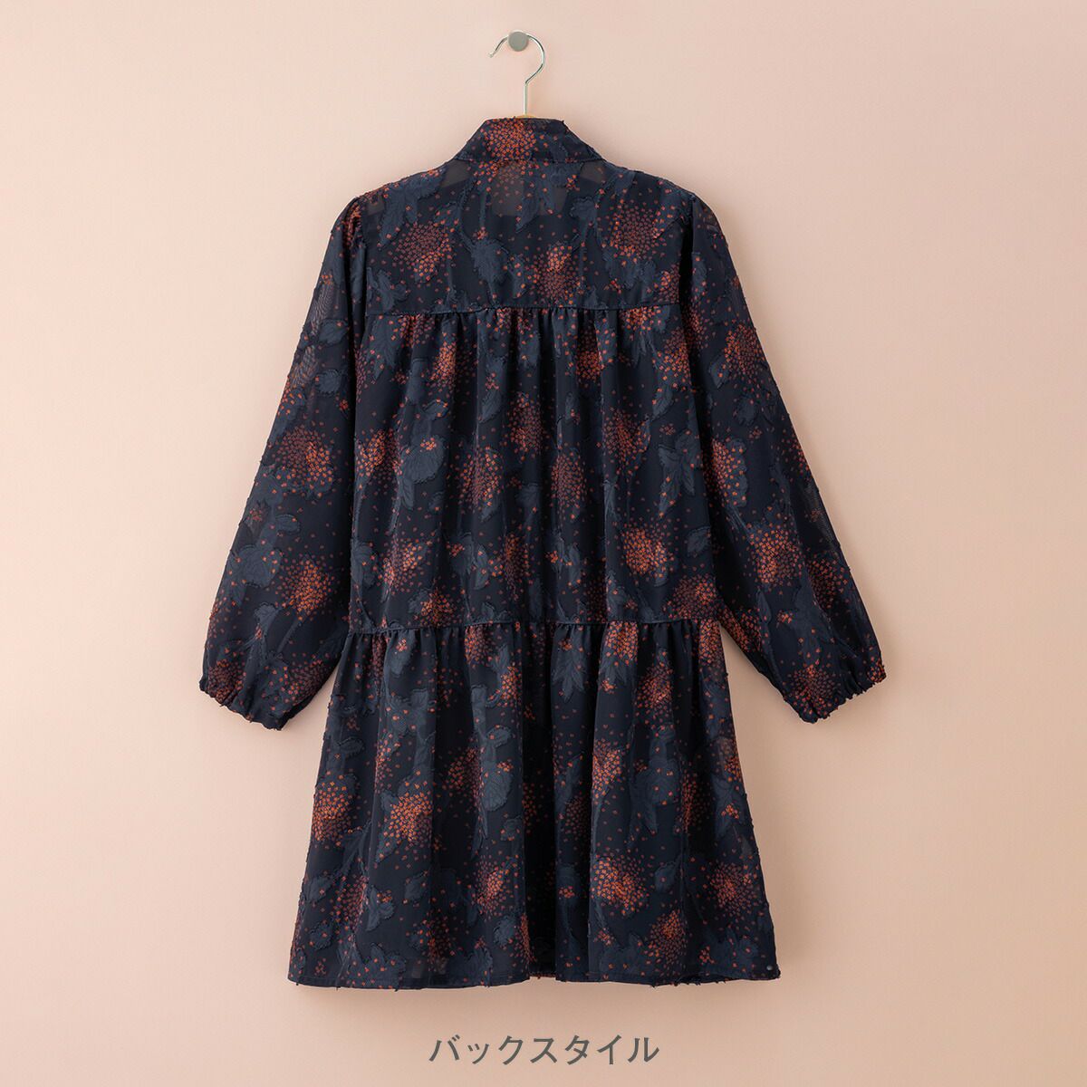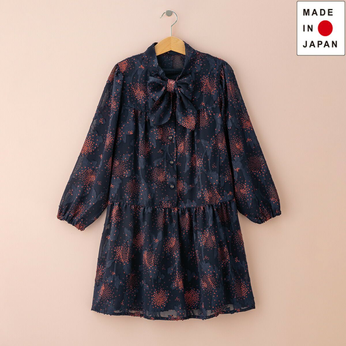 日本製 長袖 フラワーシフォンワンピース(インナー付き)